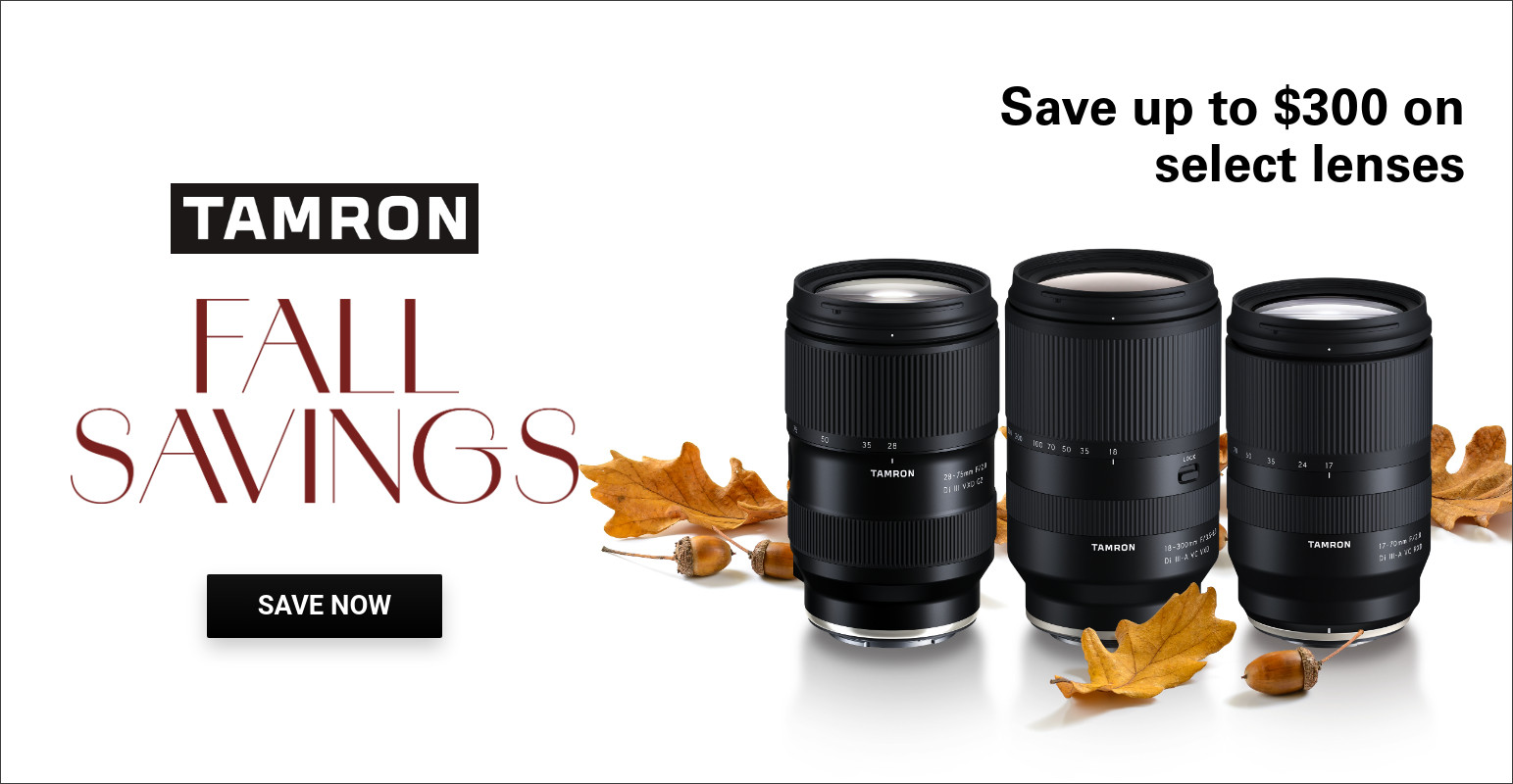 Fall is here, and so are Tamron’s Fall Savings! Now through November 2, 2025, save up to $300 on select Tamron lenses for Sony E-mount, Nikon Z mount, and FUJIFILM X-mount cameras. Don’t miss this incredible opportunity to elevate your photography just in time for all your upcoming fall adventures!