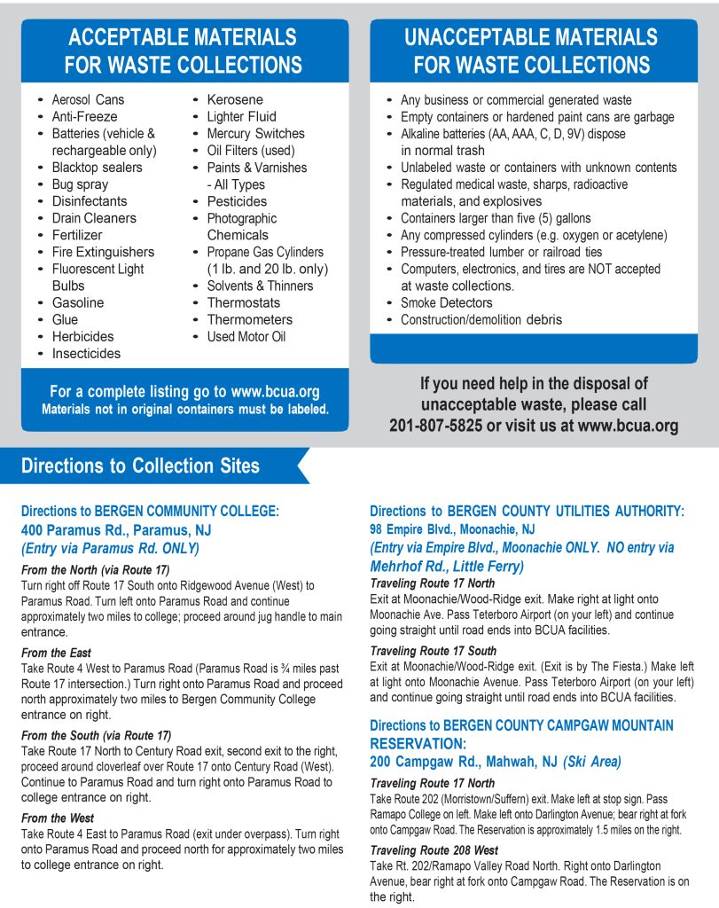 Hazardous Waste Days open to Bergen County, NJ Residents Only